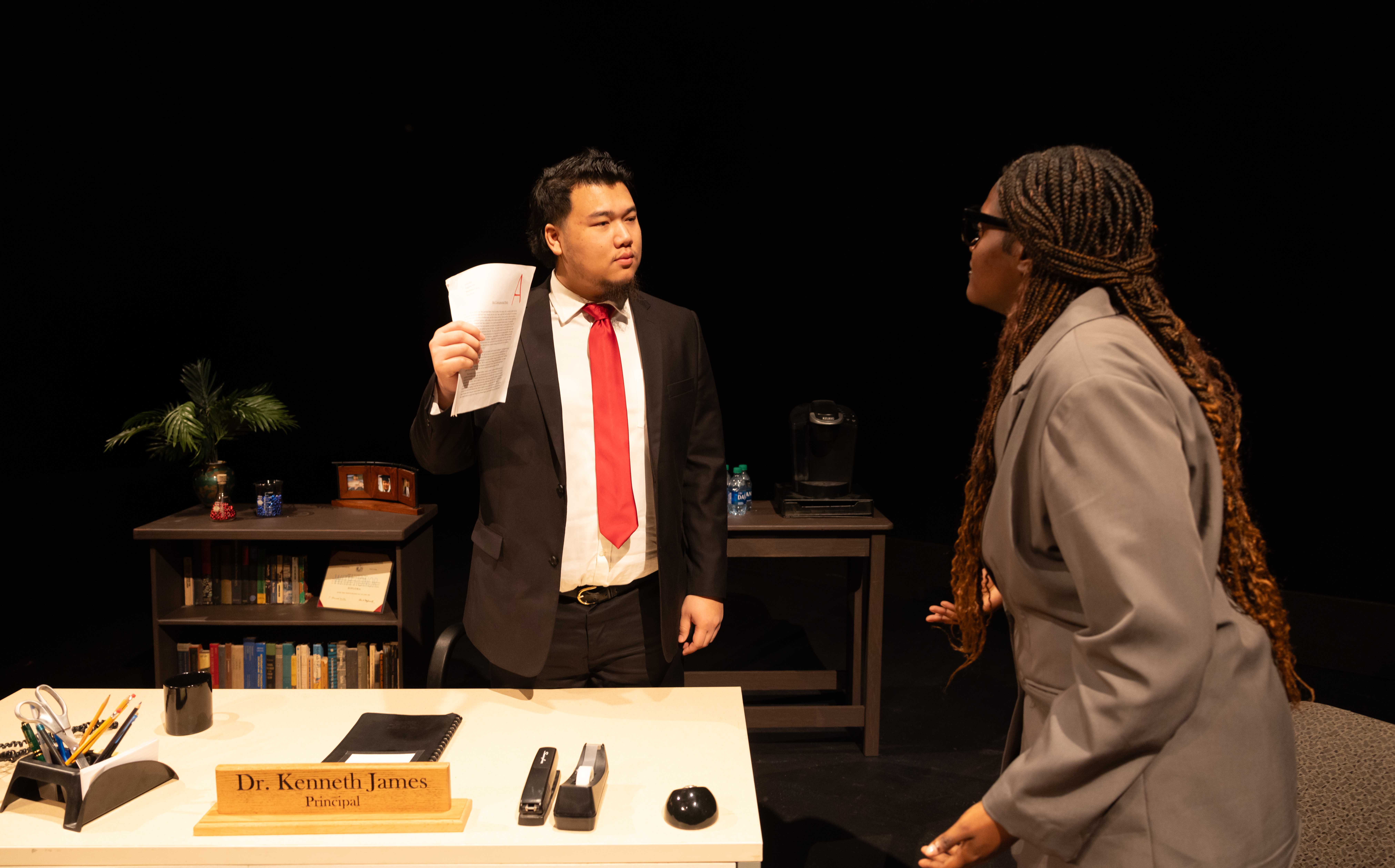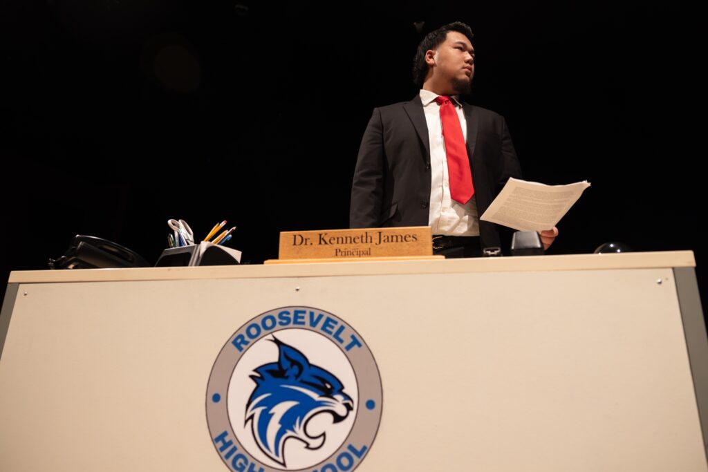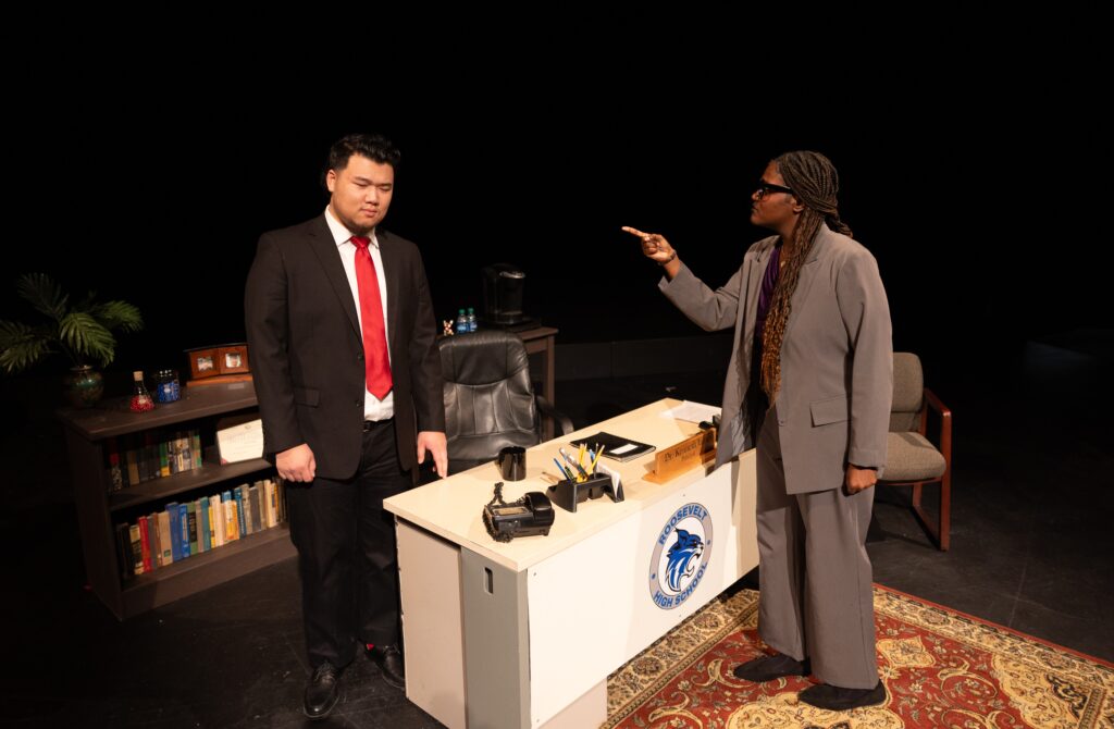 The play takes place in three locales: A centrally located principal’s office at Roosevelt High School, located in a mid-sized city